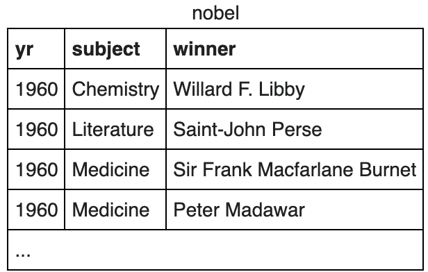 SELECT * FROM nobel